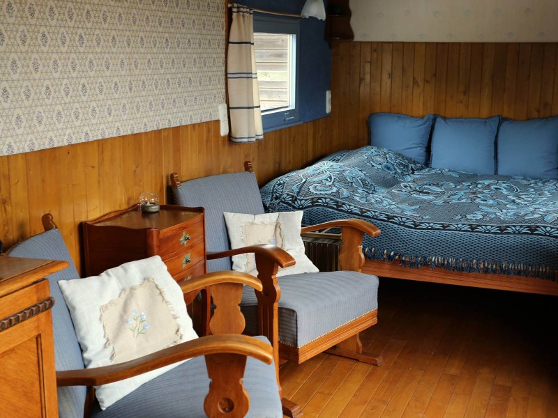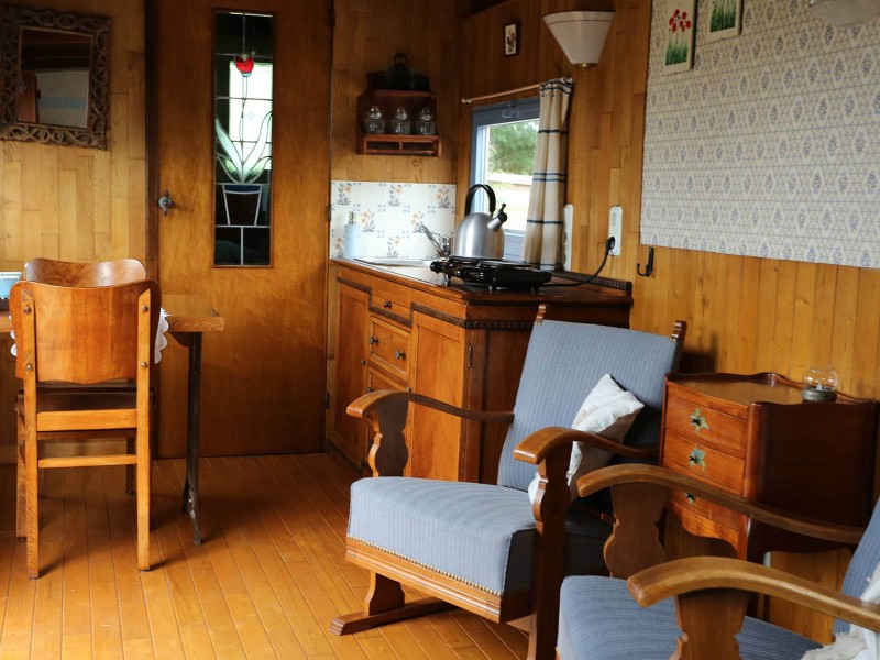 Iedere droomwagen heeft een 2-persoons bed van 1.40 m breed. Er staan 2 gemakkelijke stoeltjes om bijvoorbeeld lekker een boek te lezen. Verder een tafel met 2 stoelen voor het ontbijt. Er kan gratis koffie en thee gezet worden. Er is een koelkastje aanwezig. De douche en toilet bevinden zich in de droomwagen.