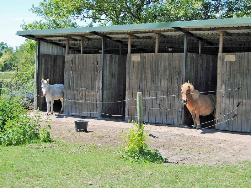 Lees MeerVoor je paard of pony is er een wei en inloopstal die je eventueel met een draad dicht kunt doen. Hooi en onderhoudsbrok is aanwezig. Je zadel kun je hangen op zadelsteunen naast de stal die je kunt afsluiten met een deur. Kom je met de koets dan kun je die overdekt wegzetten.