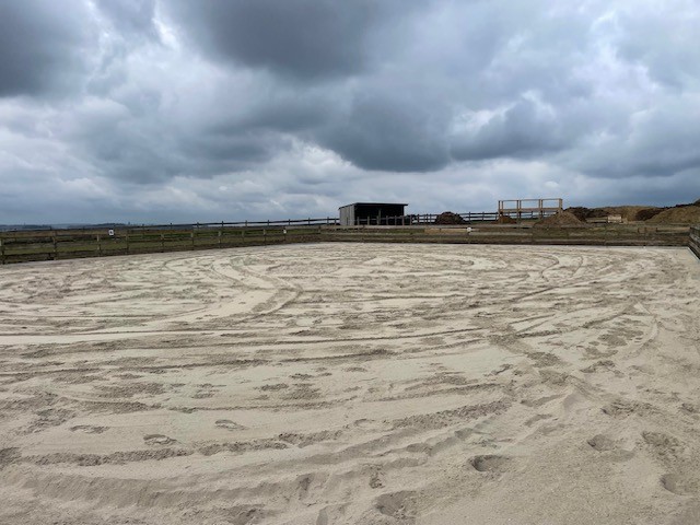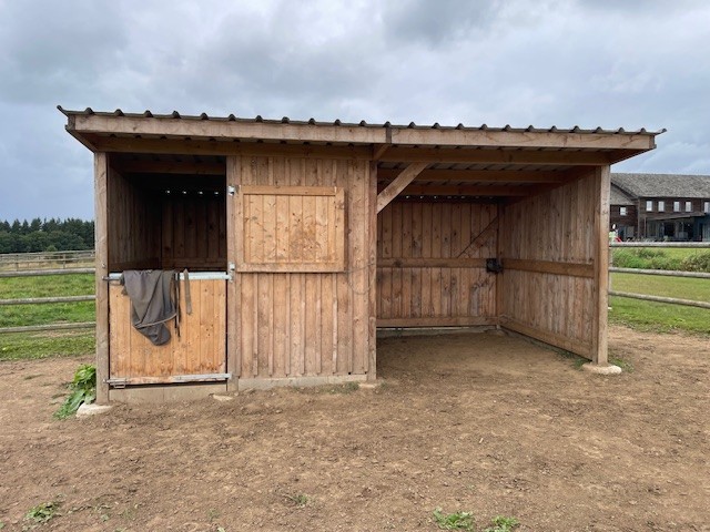 Twee paddocks van circa 750m2, elk met een schuilhok van 4x3 meter, geschikt voor één paard.