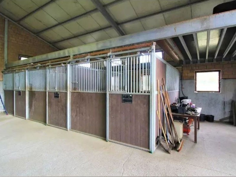 Lees MeerAan de overkant van de vakantiewoning is een volledig uitgebouwde stalling met 3 boxen, weidegang voor de zomer en paddock voor de winter. Er is een afzonderlijke toegang voor aanhangwagens en koetsen.