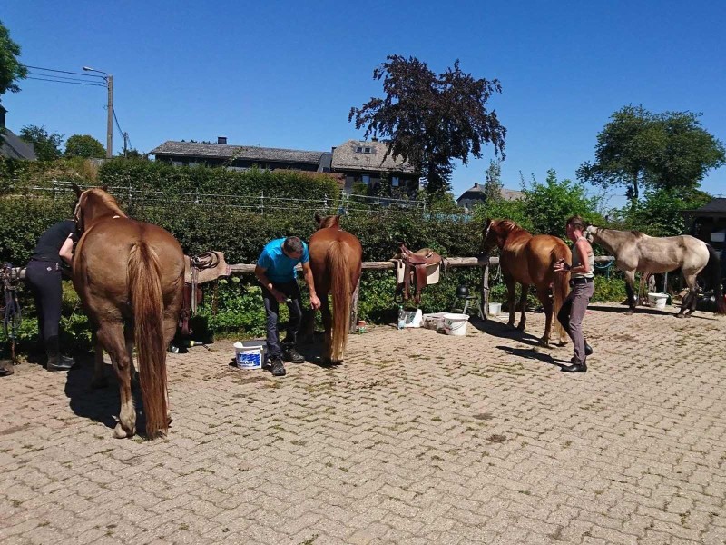 De eigenaren hebben de verzorging van je paard of pony zo comfortabel mogelijk gemaakt. De afstanden zijn kort en alle materialen zijn aanwezig. Voor het stalgebouw bevindt zich een wasgelegenheid. De gastpaarden hebben de beschikking over hooi van eigen teelt. Gevoelige paarden kunnen kuilvoer krijgen. Neem in dat geval hierover vóór je bezoek contact op. Er is altijd havervrije paardenmuesli en haver op voorraad. Er is een Roundpen van 19 meter voor training.
