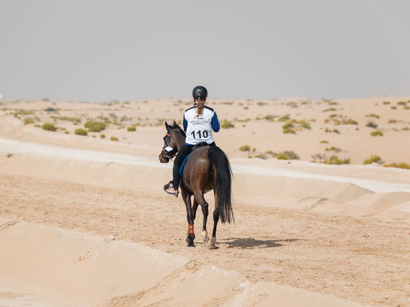 160 kilometer door de woestijn Het WK Endurance wordt op 25 februari 2023 gehouden in de Verenigde Arabische Emiraten.De start in het donker…