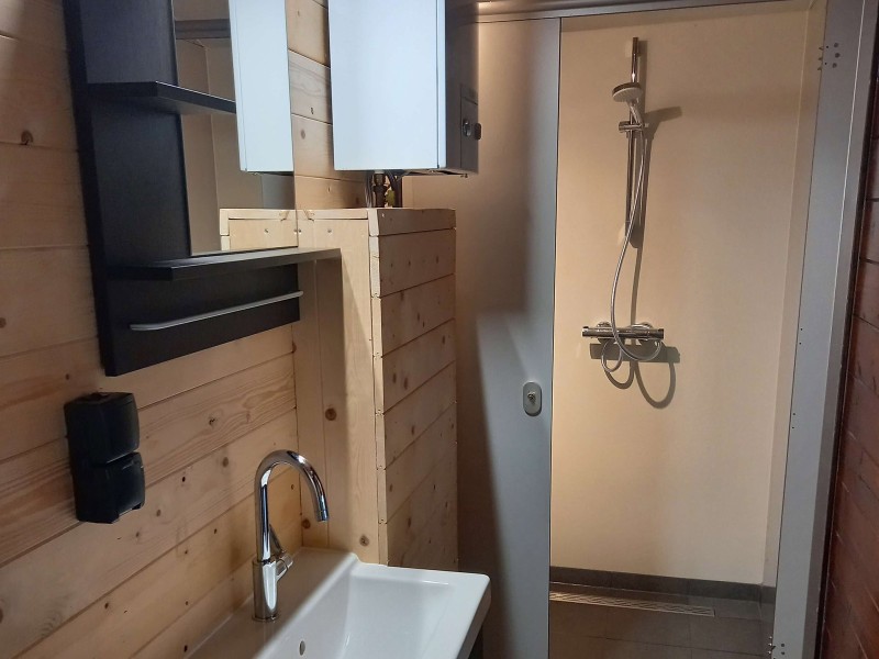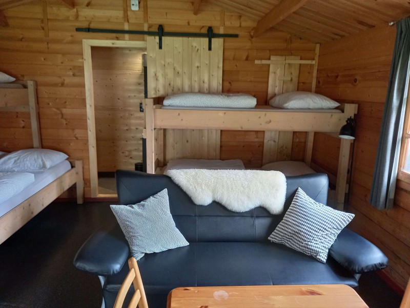 De knusse blokhutten hebben allemaal een eigen badkamer, een compleet ingerichte keuken, een eettafel met 5 stoelen, een 2,5 zits bank en eigen verwarming. Op het terras staat terrasmeubilar en een vuurkorf.