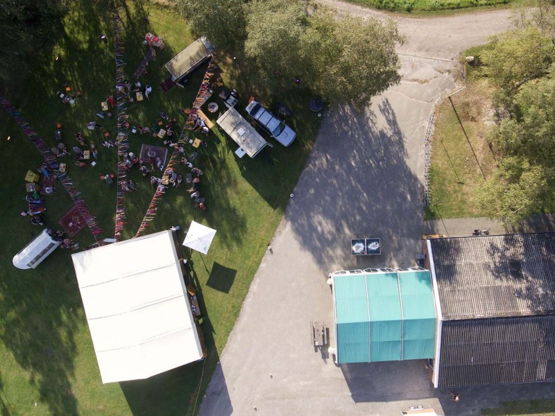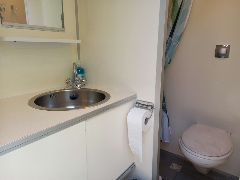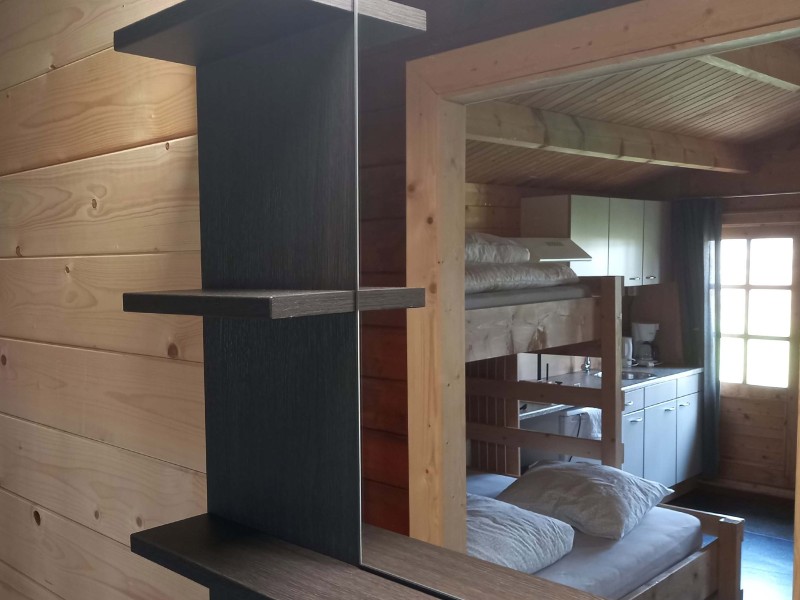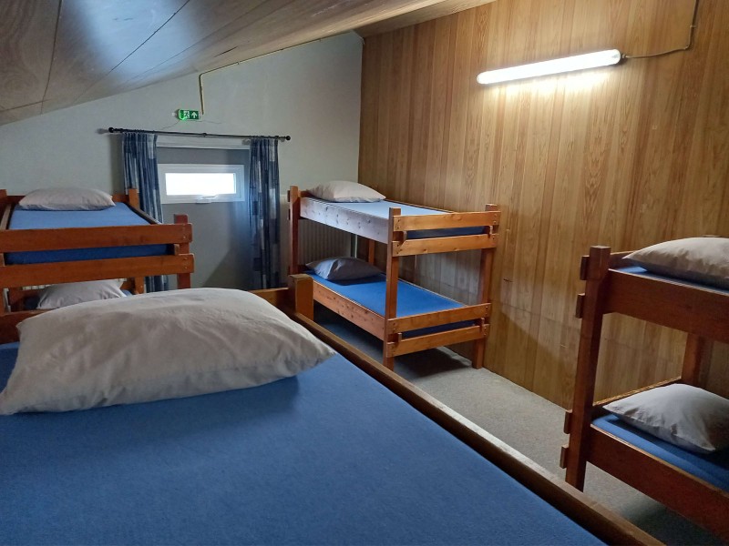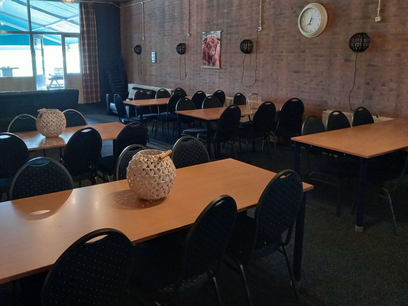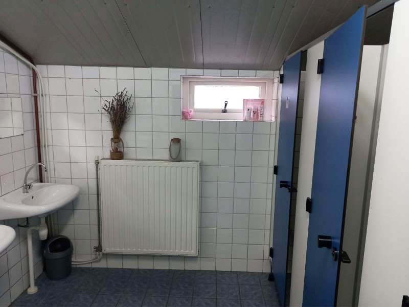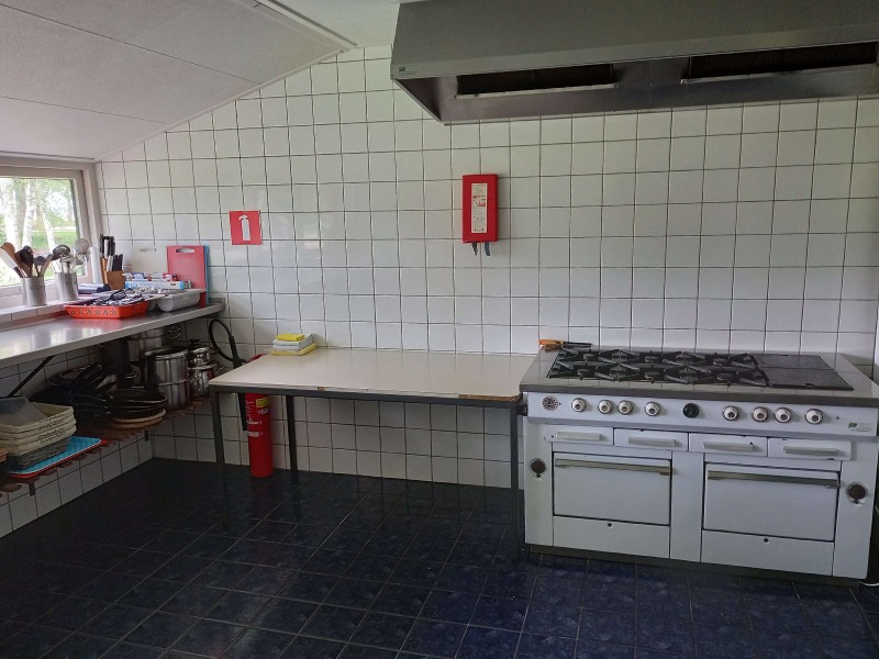 De groepsaccommodatie is verdeeld over twee slaapzalen. Er kunnen eventueel nog 4 stapelbedden extra geplaatst worden, zodat er 40 personen kunnen overnachten. Voor groepen met meer dan 40 personen zijn er 5-persoons blokhutten of 6-persoons safaritenten bij te huren. Het groepsverblijf beschikt over een ruime recreatiezaal met daaraan vast een overdekt terras van 8x9 meter met picknickbanken. De gezamenlijke binnenruimte is ingericht met meerdere banken en grote tafels met veel stoelen, zodat je met de hele groep gezellig samen kan zijn om tv te kijken of om een spel te doen. Er is een bar, meerdere koelkasten en een goede geluidsinstallatie. Een potje darten of tafelvoetbal spelen, ook dat kan in deze fijne ruimte! De keuken is voorzien van vaatwasser, groot fornuis met 2 ovens, koel-/vriescombinatie, magnetron, koffiezetapparatuur en waterkoker. Op de begane grond bevinden zich twee slaapzalen met stapelbedden, net als 6 douches, 4 toiletten en 8 wastafels. Er is altijd maar één groep aanwezig.