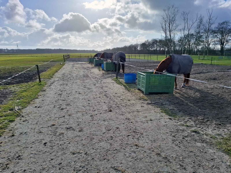 overnachting in weide, overnachting in stal, weidegang mogelijk, basisbrok, stro, wasplaats, hooi, paddock aanwezig, vlas, zadelkamer/-kast