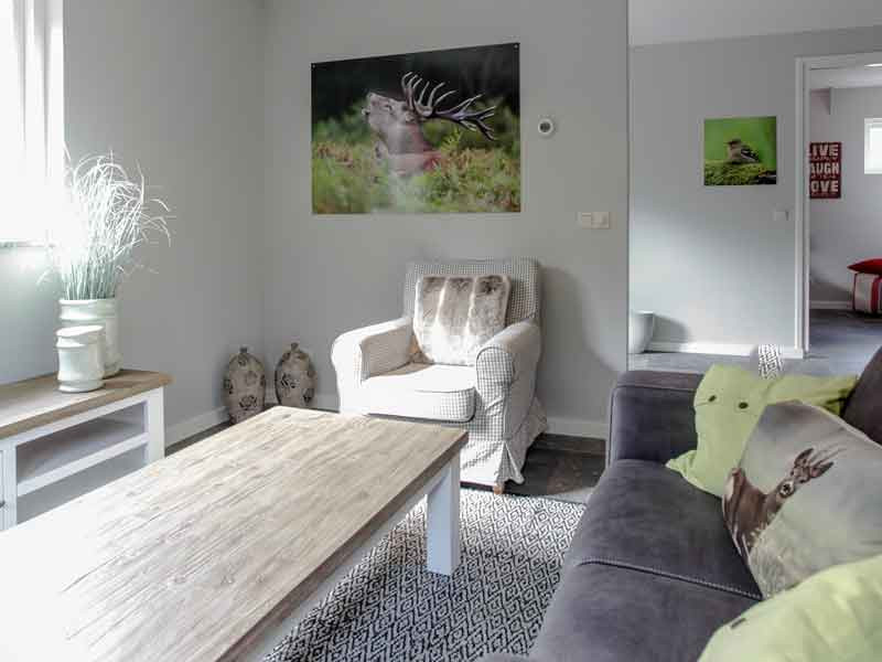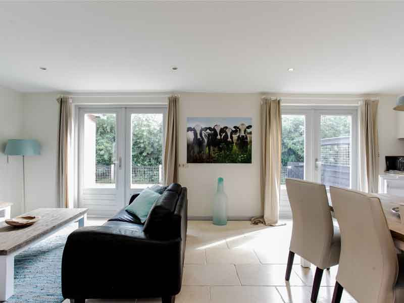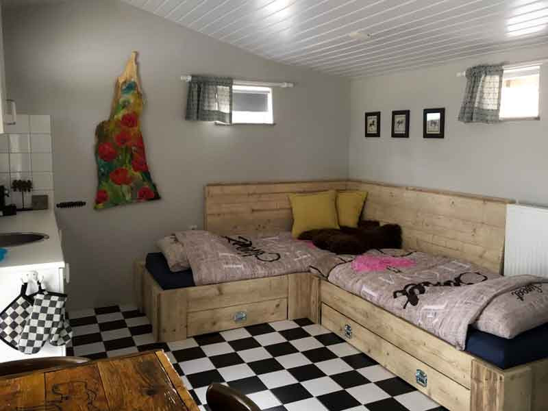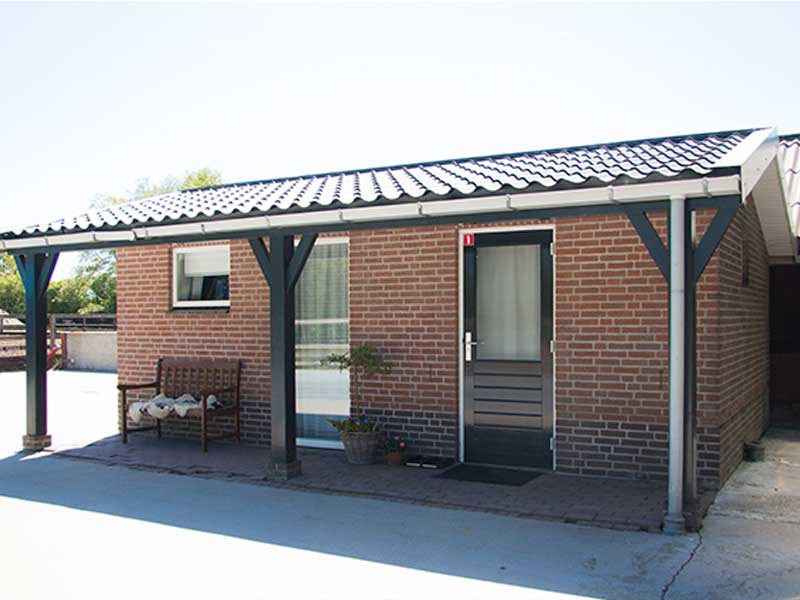 Huisje Meike is het achterste huisje. Qua grootte en indeling is het ongeveer gelijk aan huisje Bram. Bij dit huisje kijk je vanuit de beneden slaapkamer naar de stallen die bij het huisje staan. Het huisje heeft 2 verdiepingen met in totaal 3 slaapkamers; 1 beneden en 2 boven. In totaal zijn er 6 boxspringbedden en een babyledikant, voorzien van een goed matrasje. Alle bedden kunnen als eenpersoonsbed worden neergezet of als tweepersoonsbed. Verder is het huisje voorzien van een luxe inbouwkeuken met inbouwapparatuur. Er is een aparte wc op de benedenverdieping en de badkamer is voorzien van een luxe badkamermeubel en ruime inloopdouche. Het huisje heeft een afgesloten tuin.