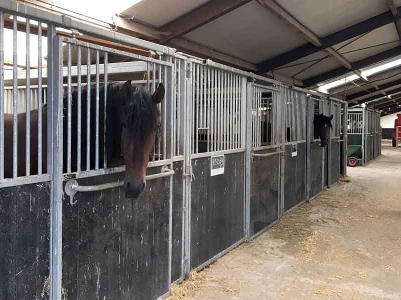 Lees MeerJe paard of pony kan onbeperkt op de wei, maar er is ook stalruimte aanwezig. Er zijn 6 ruime stallen beschikbaar en eventueel nog meer. De stallen zijn bij aankomst netjes op gestrooid en er is standaardbrok en hooi aanwezig. Indien je paard ander voer krijgt, dien je dit zelf mee te nemen.