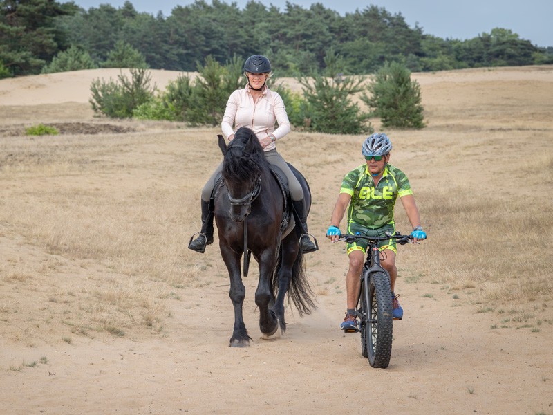Lees MeerVanaf de accommodatie rij je zo het bos in met aansluiting op het ruiter- en menroute netwerk.