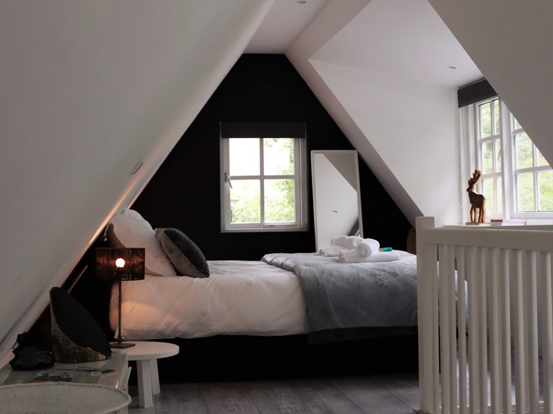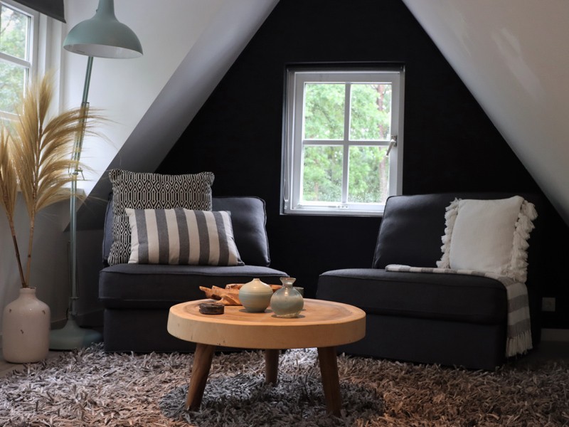 Lees MeerHet boshuisje is voorzien van een living met sfeervolle gashaard. Ook de badkamer met douche (met luxe Rituals verzorgingsproducten) bevindt zich op de benedenverdieping. De slaapkamer op de bovenverdieping heeft een heerlijk tweepersoonsbed. Naast het tweepersoonsbed is er een 2-persoonsbedbank en twee 1-persoonsbedstoelen aanwezig. Allemaal voorzien van toppers en hoge kwaliteit beddengoed. Indien gewenst kun je gebruikmaken van de moderne keuken die van alle gemakken is voorzien.