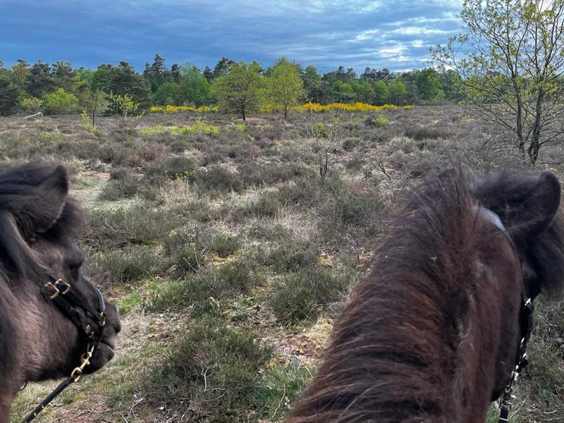 Lees MeerDe boerderij staat midden in het bos, dus dat betekent ook voor het paardrijden dat je echt alle kanten op kunt. Maar ook voor de mensen die wandelen of fietsen is het hier fantastisch. Het Marskramerpad loopt langs de boerderij.