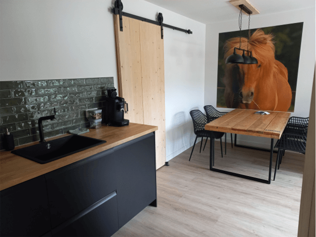 De gastenkamers hebben een slaapkamer met aangrenzend een heerlijke badkamer met inloopdouche en wc. Voorin is een ruime woonkamer met een bank en kleine eettafel. Ook is er een keuken aanwezig waar je zelf wat klaar kan maken. Het ontbijt is bij je verblijf inbegrepen.