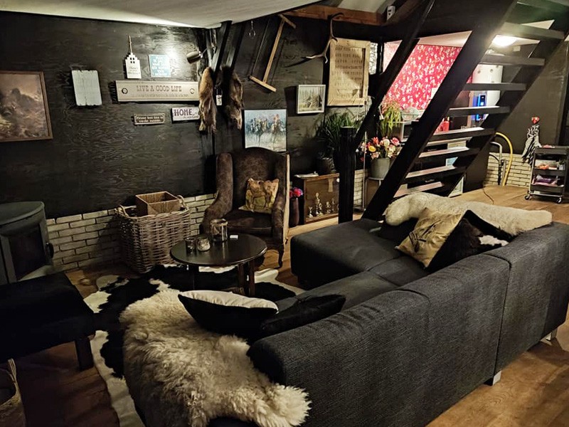 In de grote ruimte beneden vind je een uitgebreide koffiemachine, grote tafel om in de avond spelletjes uit de kast te spelen. De houtkachel maakt de koude avonden ontzettend gezellig. In de ochtend krijg je een heerlijk uitgebreid ontbijt, waarna je uitgerust weer samen met je paard op pad kunt.