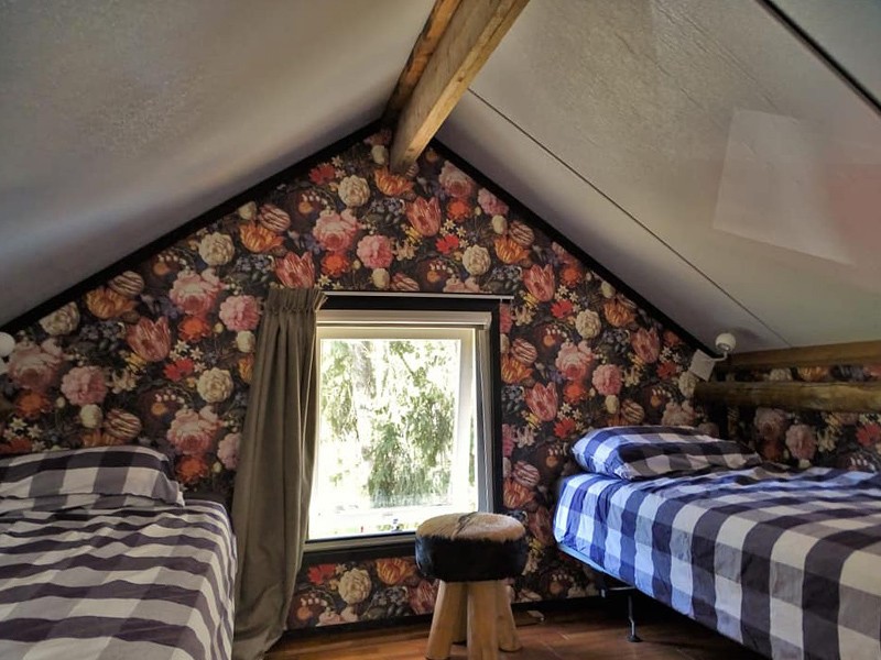 Buiten staat een trekkershut waar ook nog 2 personen kunnen overnachten. Deze is niet verwarmd.