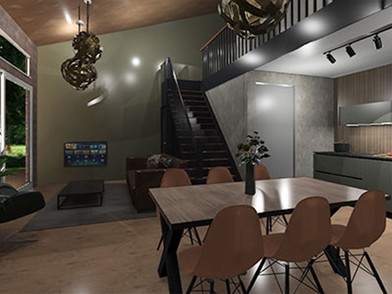 - Open keuken compleet ingericht (grote koelkast met vriesvakje, vaatwasser, combi-oven, kookplaat met afzuiging, koffieautomaat, waterkoker)