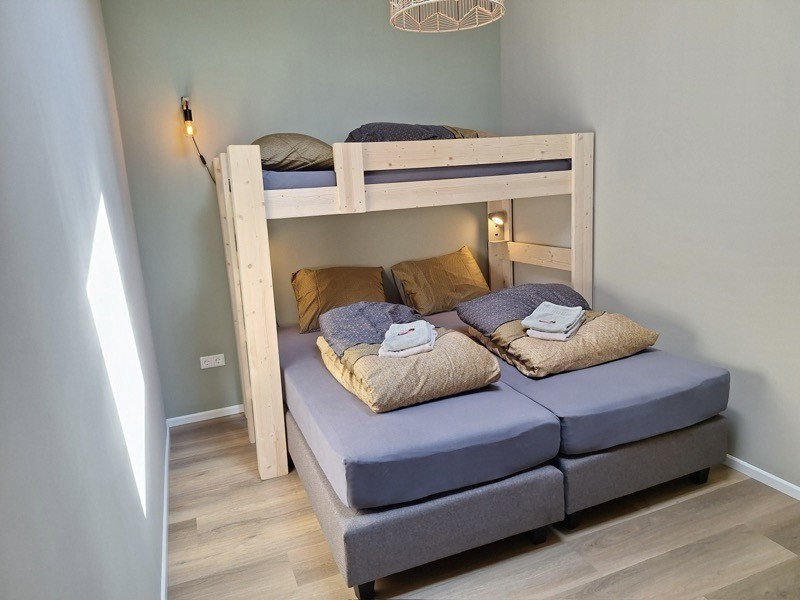 - 1 slaapkamer met 2-persoons bed (deelbaar) en 1 hoogslaper