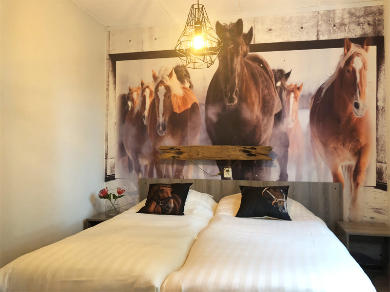 Vlak naast de manege vind je zespersoons bungalows, zespersoons Glamping Lodges en iets verderop luxe zespersoons Chalets. Variërend van comfort tot luxe met vaatwasser, combimagnetron en loungeset.